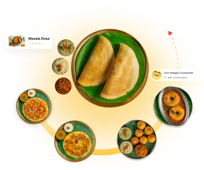 Our menu is a vibrant canvas crafted from aromatic spices and locally-sourced ingredients, showcasing everything from crispy vadas to rich Chettinad curries.